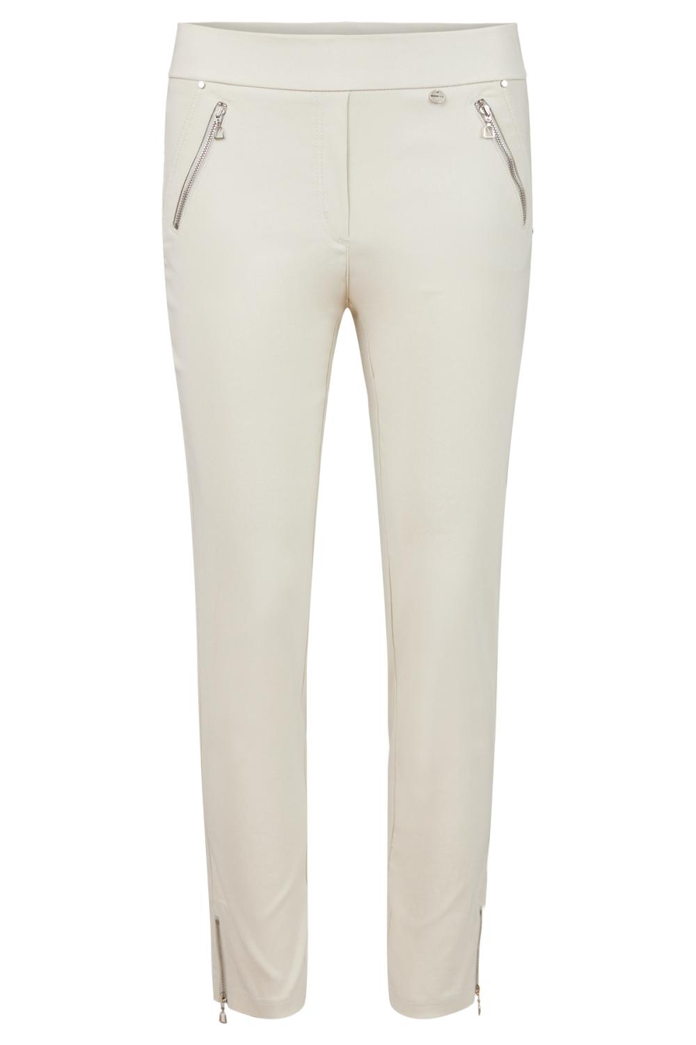 Byxbenen är smala och avslutas med blixtlås. Byxan har bakfickor och fickor framtill med blixtlås.