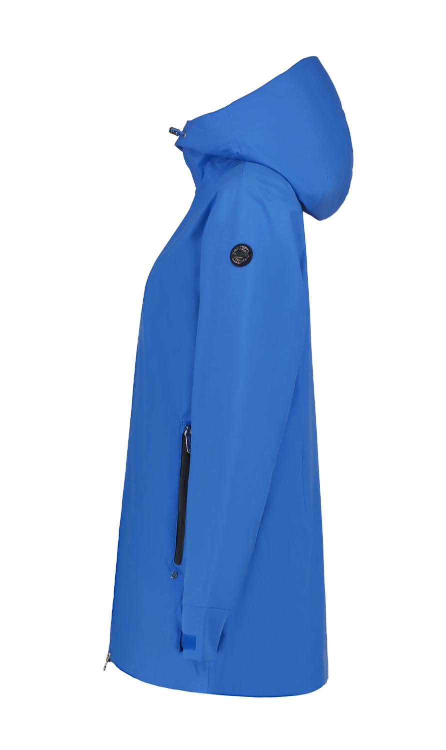 En superbra Luhta jacka i en härlig färg med fast huva som är tvåvägsjusterbar. Kardborrejustering vid ärmsluten och två framfickor med dragkedja.