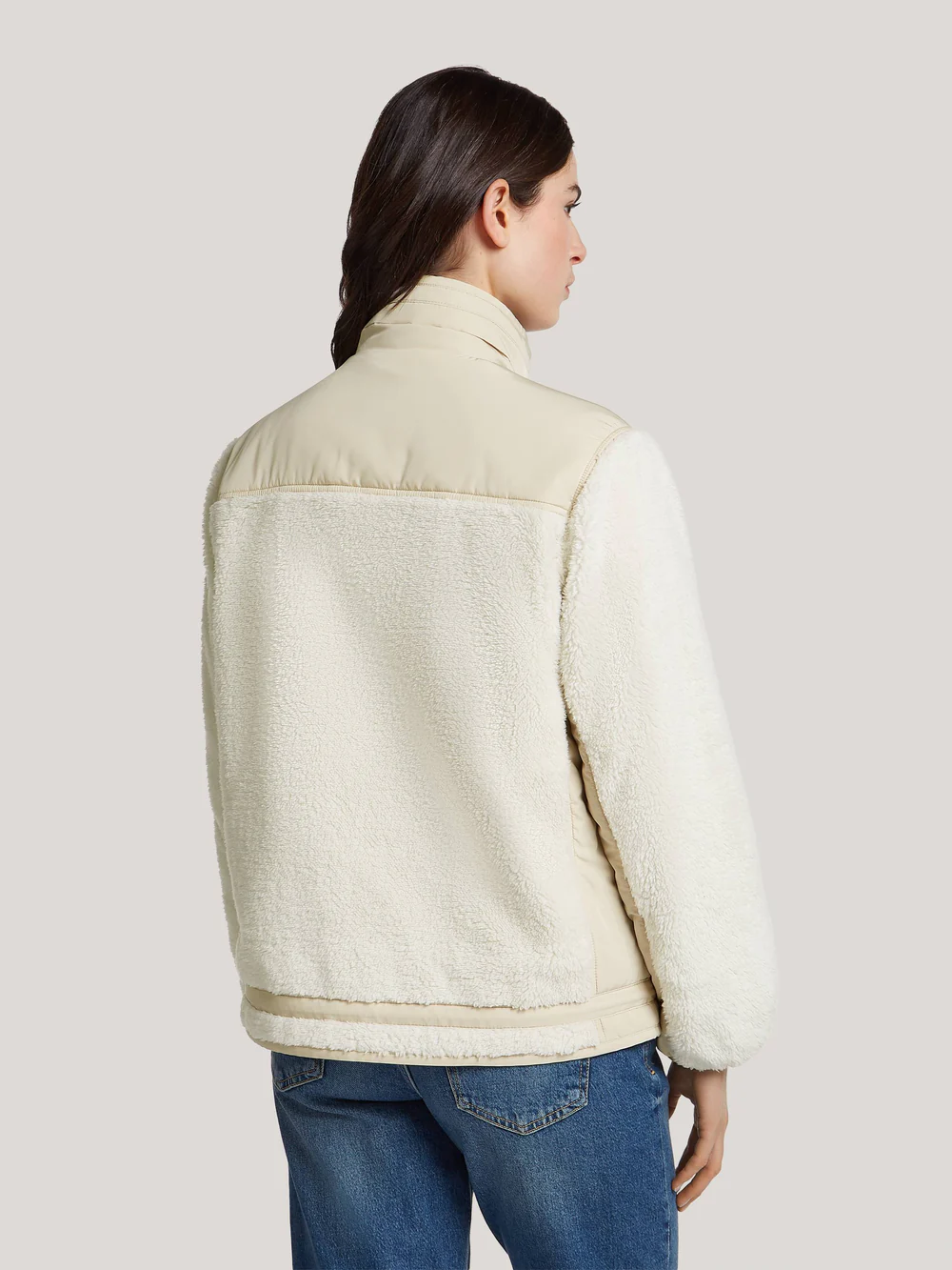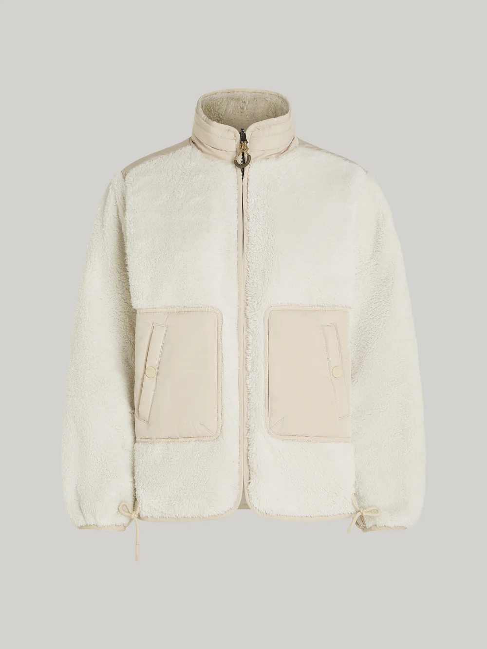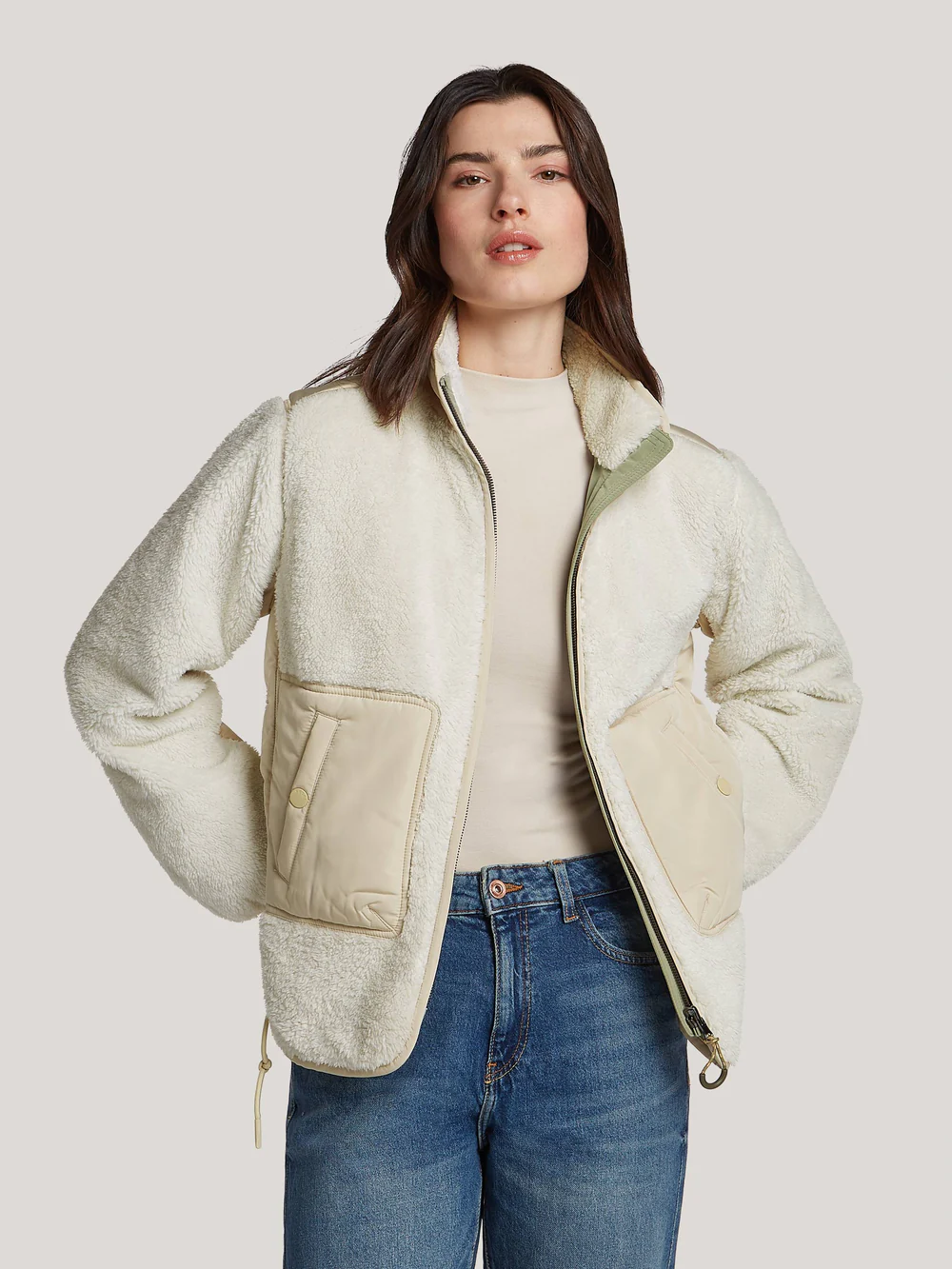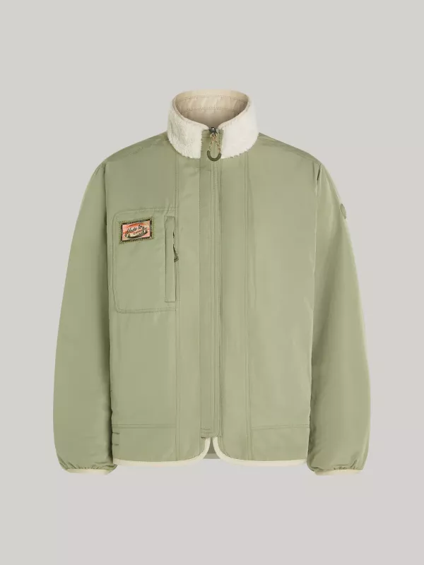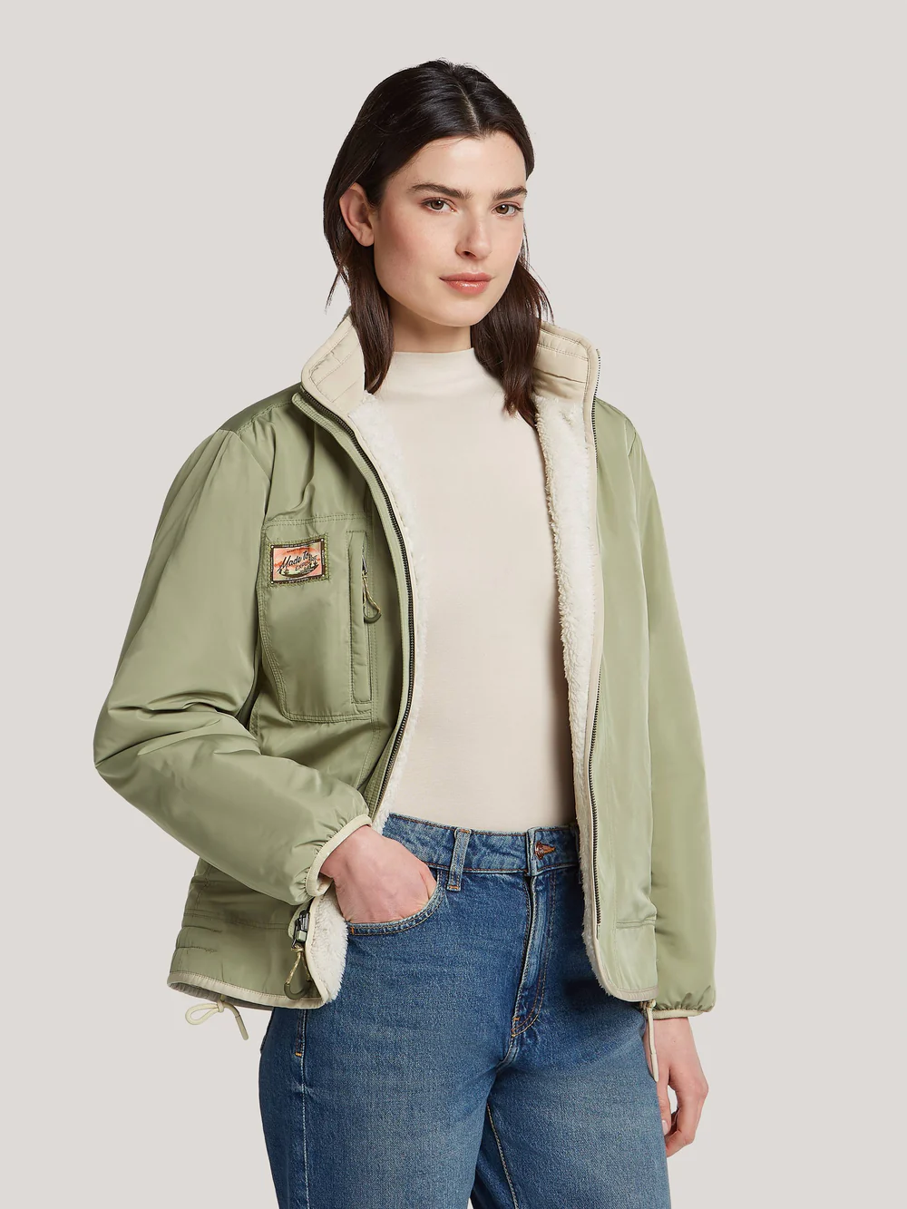 Den här vändbara jackan är ett mångsidigt tillskott till din vårgarderob. Bär den som du vill, med det ljust färgade teddytyget på utsidan eller vänd den och få en tuff grön vårjacka och låt teddyn hålla dig varm.
