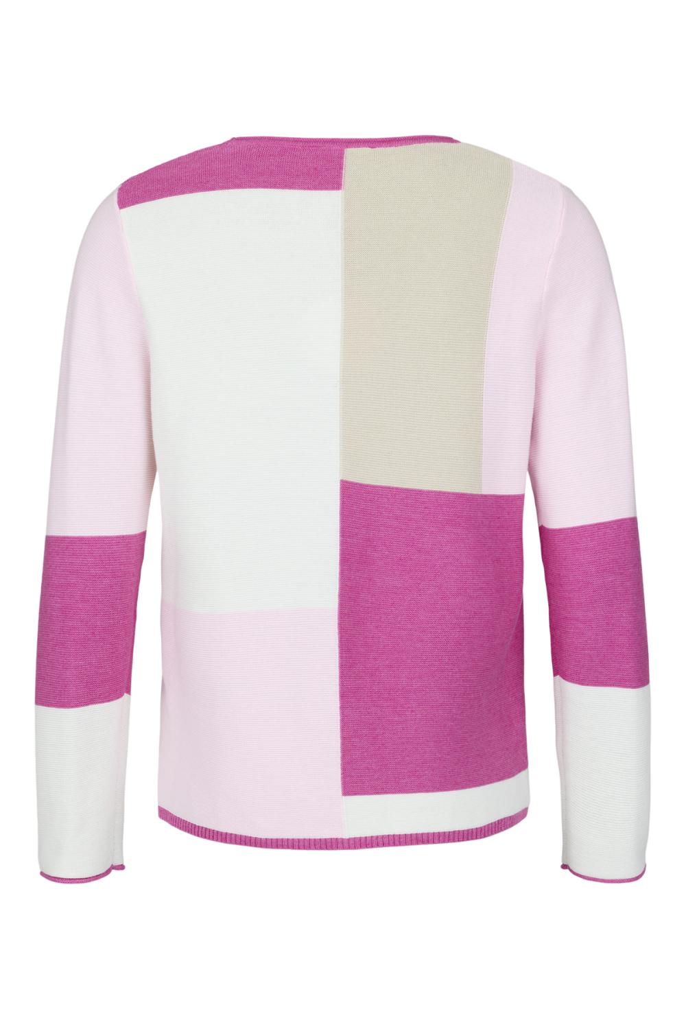 Stickad tröja i fräscha färger. Modellen är rak och med hellånga ärmar.