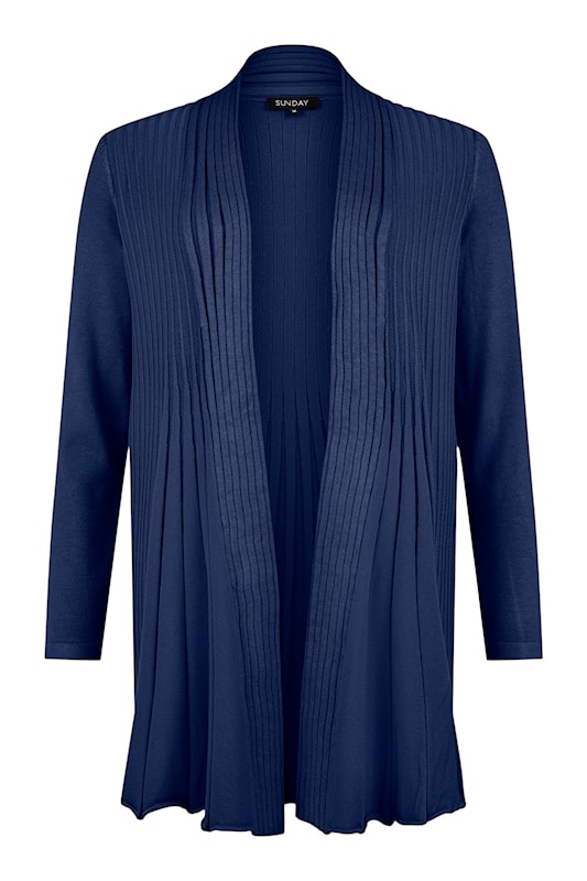 En superbra baskofta att använda året runt. Koftan är finstickad och något längre i modellen, längd 82 cm.