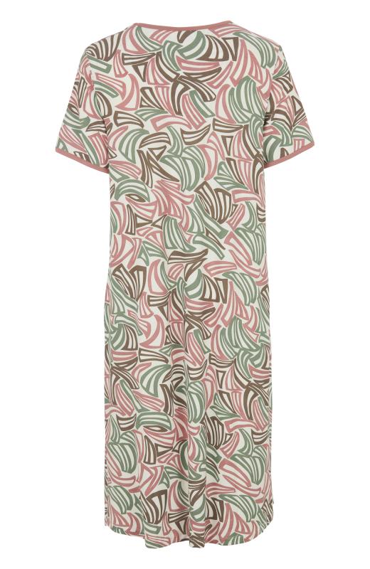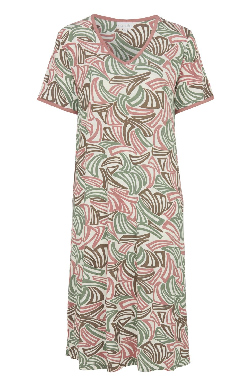 Nattlinnet har ett mönster i milda färger, är vadlångt och med kort ärm.