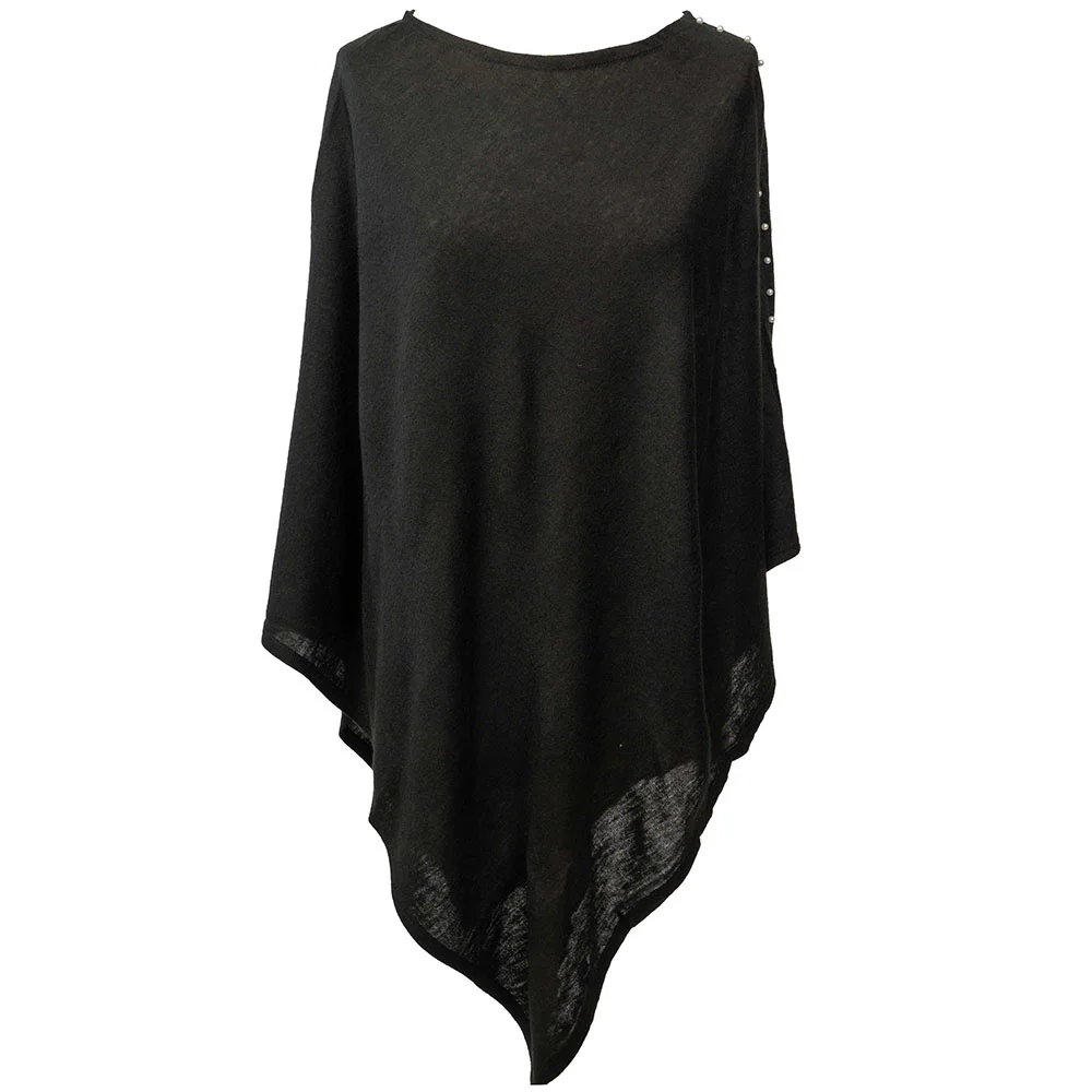 Svart poncho i en skön kvalitet med ett dekorativt pärlband på ena sidan, ett plagg för många olika tillfällen.