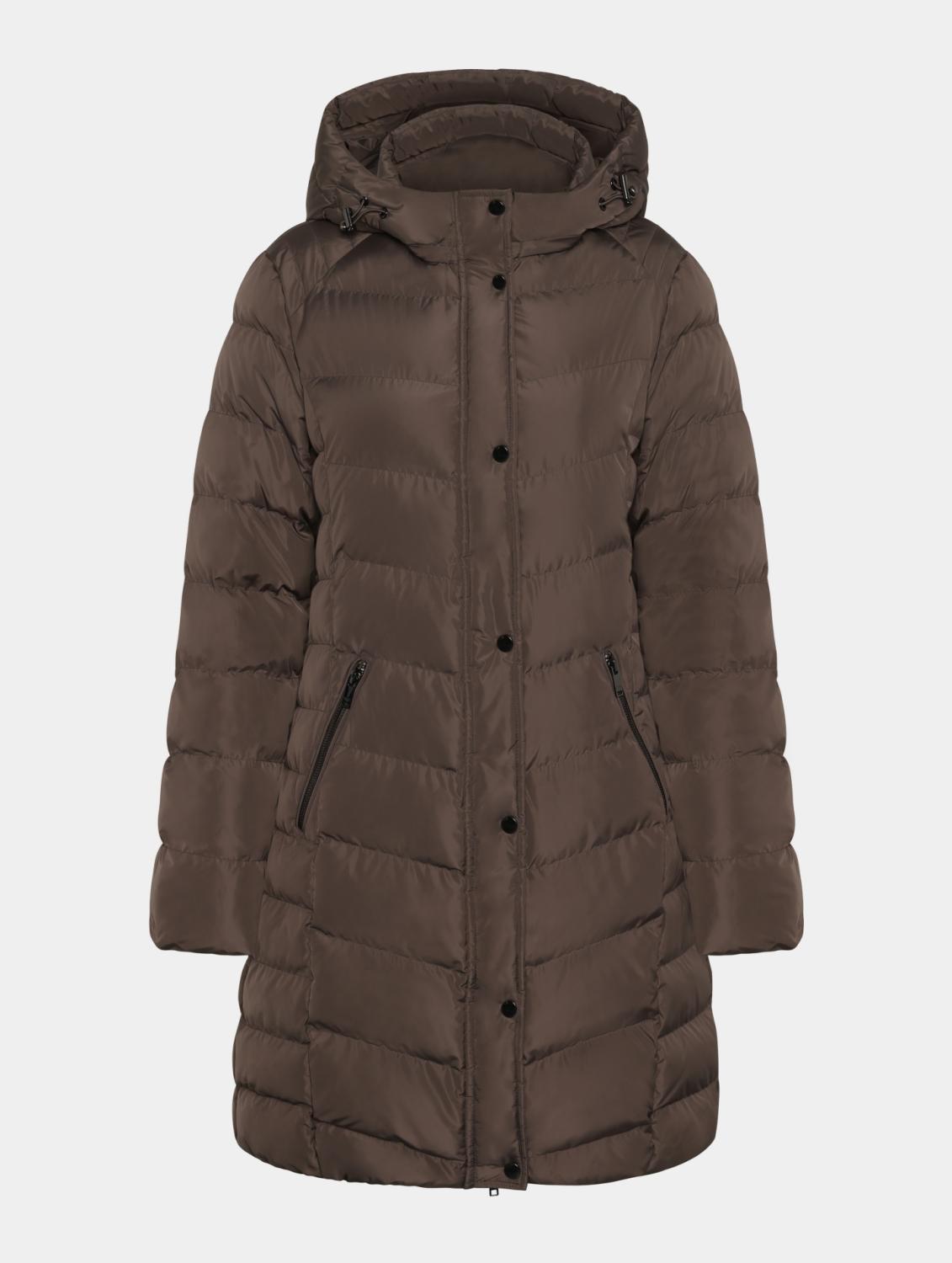 Varm och skön täckjacka i en fin mullvadsbrun färg med avtagbar huva.