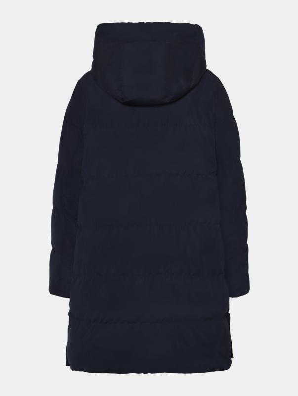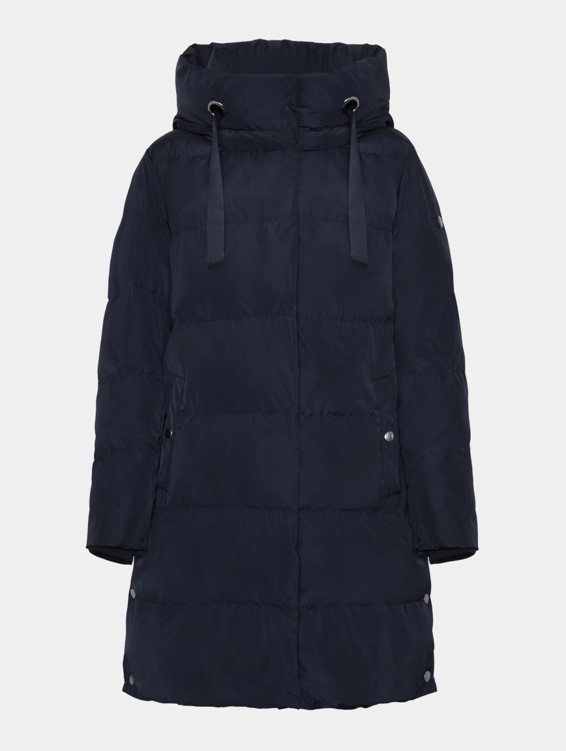 En varm och skön marinblå vinterjacka som kan stängas med både tvåvägsblixtlås och tryckknappar.