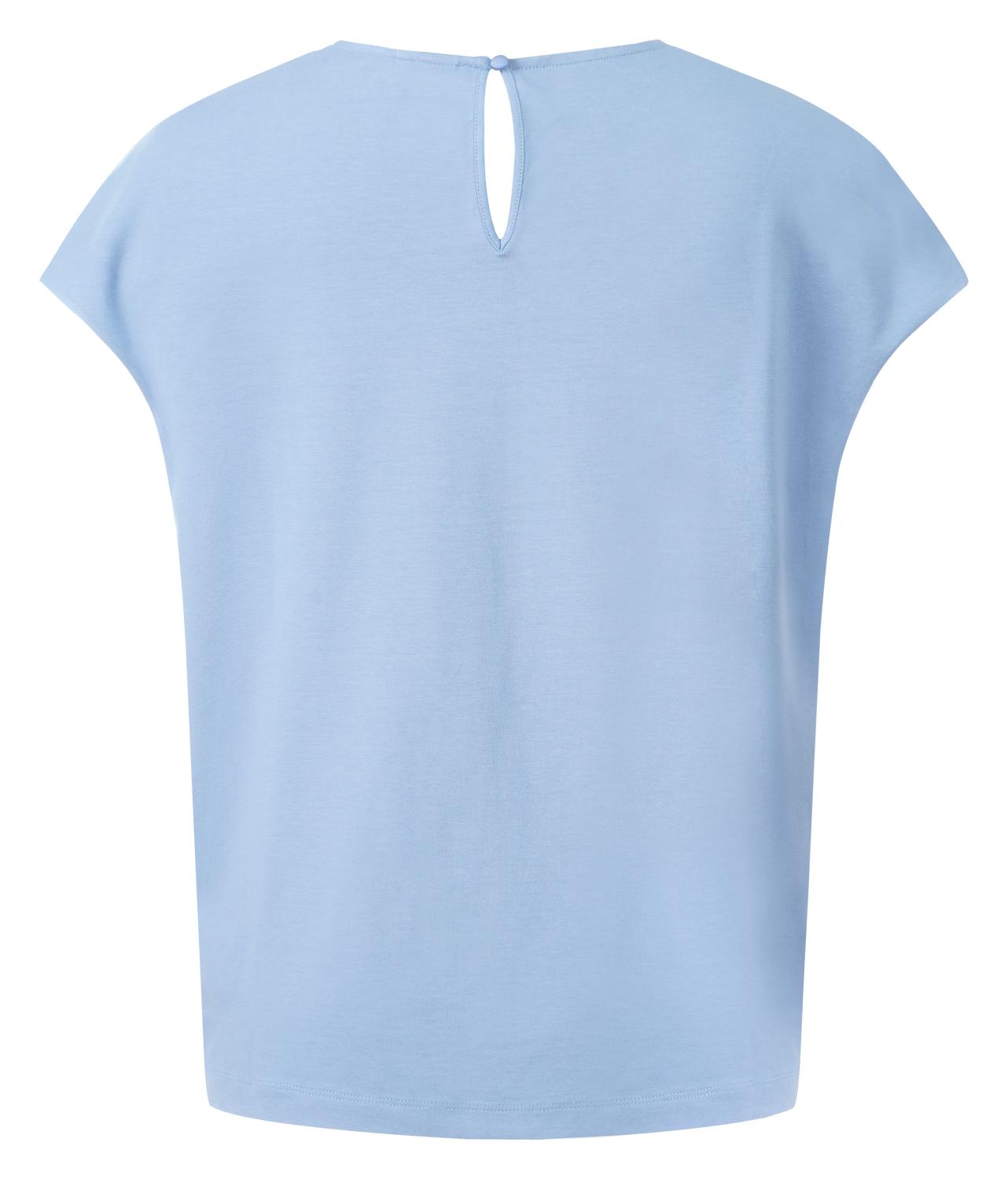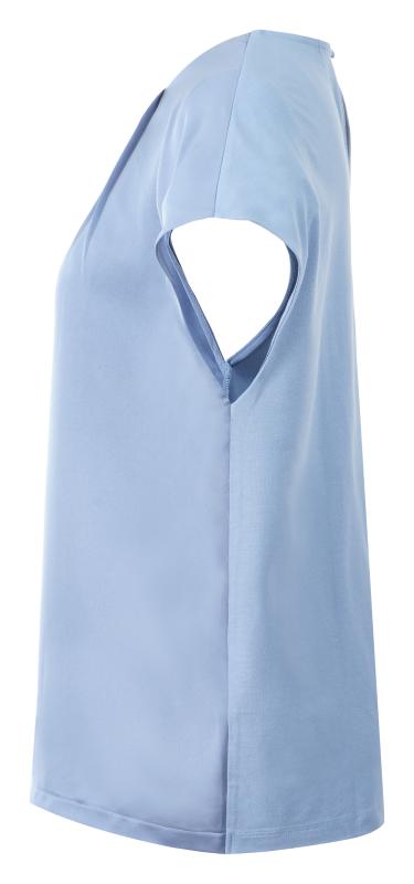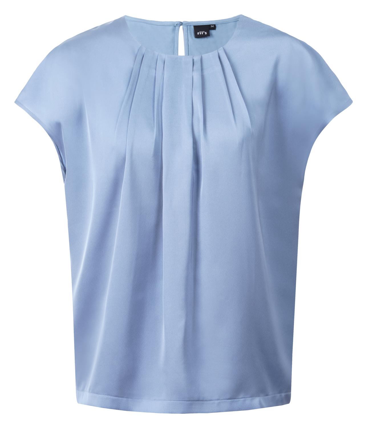 En mycket elegant topp/blus med fina veck vid halsringningen. Blusen har en liten holkärm och bakstycket är i ett smidigt och bekvämt trikåtyg för bästa komfort.