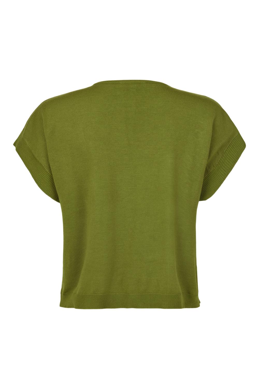 En finstickad topp med en liten holkärm. Kan bäras som topp eller slipover över annat plagg.